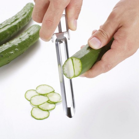 Su šiuo japonišku „Suncraft“ skustuku greitai, paprastai ir saugiai nuskusite arba susmulkinsite įvairiausias daržoves. Įrankio rankena – labai ergonomiška, todėl dirbti su šiuo skustuku bus patogu ir lengva. Tai puikus pagalbininkas kiekvienoje virtuvėje.