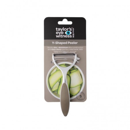 „Taylor Eye Witness“ Y formos skustuko ašmenys pasižymi neįtikėtinu aštrumu, dėl kurio daržovių ar vaisių skutimas taps tikru malonumu. Pagaminta be BPA ir ftalatų, galima plauti indaplovėje. Kontrukcija iš cinko-aliuminio lydinio, o ašmenys – nerūdijančio plieno.