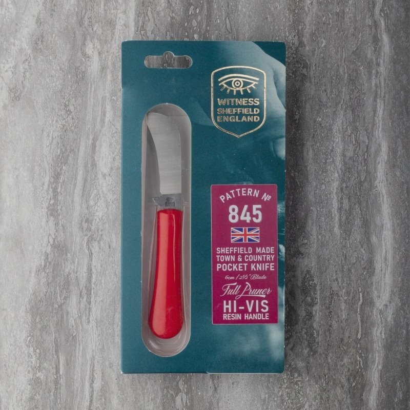 Šis Sheffield gamybos "Town & Country Red Full Pruner Pocket Knife" – turintis 5,5 cm ilgio ašmenis – tai tradicinis britiškas kišeninis sodininko peiliukas, rankų darbo gaminamas Taylor’s Eye Witness fabrike Šefilde (Anglija). Jis pasižymi aukštais kokybės bruožais, pagamintas iš 420H nerūdijančio plieno su blizgia, raudona dervos rankena.