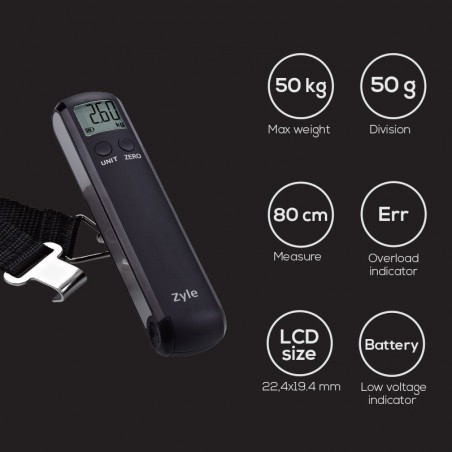 Nešiojamos „Zyle“ lagaminų svėrimo svarstyklės – nepakeičiamas kelionių palydovas, ypač skrendant lėktuvu. Su šiomis svarstyklėmis tiksliai pasversite iki 50 kg sveriančius daiktus su 50 g tikslumu. Dėl kompaktiško dizaino ir itin tvirto korpuso svarstyklės puikiai telpa į kelioninį krepšį, todėl jas visada galėsite turėti su savimi. Svorio matavimus akimirksniu pamatysite integruotame ekranėlyje, o integruota matavimo liniuotė leis tiksliai įvertinti lagamino dydį.