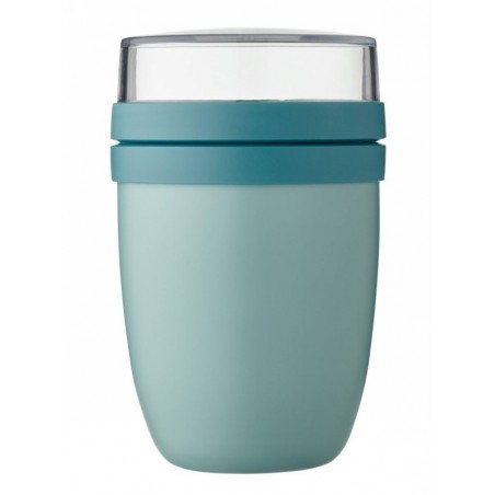 Rytais visada trūksta laiko? Skamba pažįstamai. Pasiimkite su savimi šį pietų indelį "Ellipse" su šviežiu jogurtu ir granola (patogu, nes dangtelyje ji išliks traški!). Šiame dvigubų sienelių nerūdijančio plieno indelyje jogurtas išliks malonus ir vėsus... iki pat pietų! Traukinyje ar darbe tiesiog sumaišykite jį ir... paruošta. Esate vakarinėje pamainoje, mokykloje ar sporto salėje, o mikrobangų krosnelės šalia nėra? Ne bėda: tiesiog namuose pašildykite sriubą, supilkite ją į pietų puodą, įdėkite skrebučius į dangtelį ir net po kelių valandų turėsite skanų karštą patiekalą! Šis maisto indelis išlaiko maistą karštą iki 6-8 valandų* ir šaltą iki 12 valandų. Natūralu, kad izoliuotas puodelis 100 % apsaugotas nuo pratekėjimo, o jo išorė išliks vėsi ir sausa, neatsižvelgiant į turinio temperatūrą. Abu skyriai turi atskirus dangtelius, kuriuos galima atsukti ir užsukti vienu pasukimu. Termo pietų puodelio dangtelis taip pat pasižymi izoliacinėmis savybėmis, todėl įprasto viršutinio puodelio dangtelio naudoti negalima. Kad spalvotu termo pietų puodeliu galėtumėte džiaugtis kuo ilgiau, patariame jį plauti rankomis. Tačiau plastikines dangtelio dalis galima plauti indaplovėje.