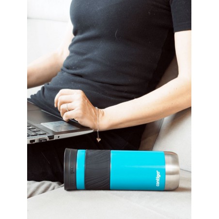 „Contigo kūrėjai siekia suteikti gyvenimui paprastumo, todėljų kuriami termo puodeliai yra su patentuota SNAPSEAL® technologija, užtikrinančia 100% apsaugą nuo skysčių pratekėjimo. Pakelkite SNAPSEAL® mygtuką į viršų kai norite atsigerti ir spustelkite žemyn, kad puodelį uždarytumėte. Nerūdijančio plieno vakuumu izoliuotas puodelis su dviguba sienele maksimaliai ilgai išlaiko gėrimo temperatūrą: Jūsų gėrimas išliks karštas net iki 7 valandų, o šaltas – 18 valandų.