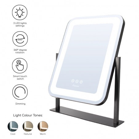 Rinkitės iš 3 spalvų apšvietimo: šiltos geltonos, įprastos baltos ir šaltos baltos spalvos. Kiekvieną spalvą atskiru mygtuku galėsite pritemdyti arba paryškinti iki norimo lygio, kuris jums labiausiai tinka.