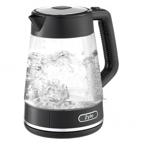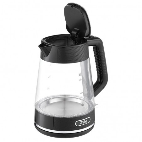 Ergonomiškas ir funkcionalus „Zyle“ elektrinis virdulys išsiskiria borosilikatinio stiklo vandens talpa su mėlynu apšvietimu, kurio dėka aiškiai matysite vandens lygi ir virimo procesą.