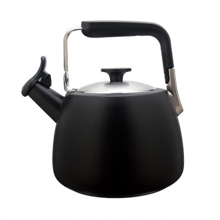 Patogi, neįkaistanti bakelito rankena užtikrina saugų ir komfortišką laikymą. Integruotas švilpukas garsiai ir aiškiai praneša, kai vanduo užverda. Plati anga leidžia lengvai pripildyti ir išvalyti virdulį.