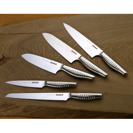 Suncraft „Moka“ kolekcijos peiliai yra pagaminti iš japoniško nerūdijančio plieno. Šie peiliai yra ypatingai aštrūs ir tvirti. „Moka“ serija išsiskiria puikiu svorio balansu tarp ašmenų ir rankenos, įrankį lengva suimti, o laikant peilio rankena neslysta, todėl naudojimas yra ne tik paprastas, patogus, bet ir dar saugesnis. Tai peiliai tikriems virtuvėms meistrams.