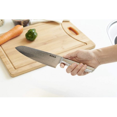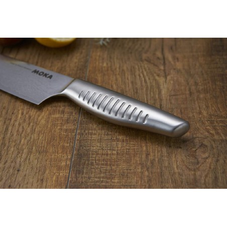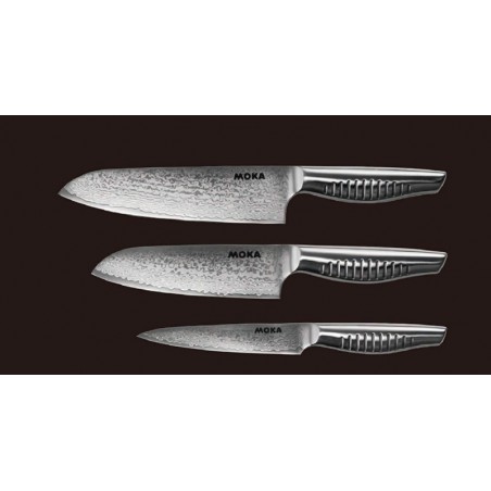 Suncraft „Moka“ kolekcijos peiliai yra pagaminti Japonijoje iš 69 Damasko nerūdijančio plieno sluoksnių su VG10 kobalto plieno šerdimi. Šie peiliai yra ypatingai aštrūs ir tvirti. „Moka“ serija išsiskiria puikiu svorio balansu tarp ašmenų ir rankenos, įrankį lengva suimti, o laikant peilio rankena neslysta, todėl naudojimas yra ne tik paprastas, patogus, bet ir dar saugesnis. Tai peiliai tikriems virtuvėms meistrams.