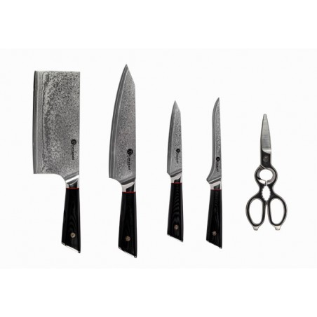 „Kamazaki“ Damasko plieno peilių rinkinį sudaro: