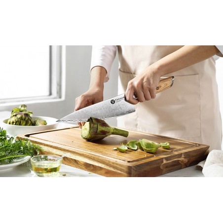 Patogi ir ergonomiška alyvmedžio medžio rankena, leis patogiai pjaustyti ar smulkinti ir po ilgo naudojimo mažiau vargins rankas.
